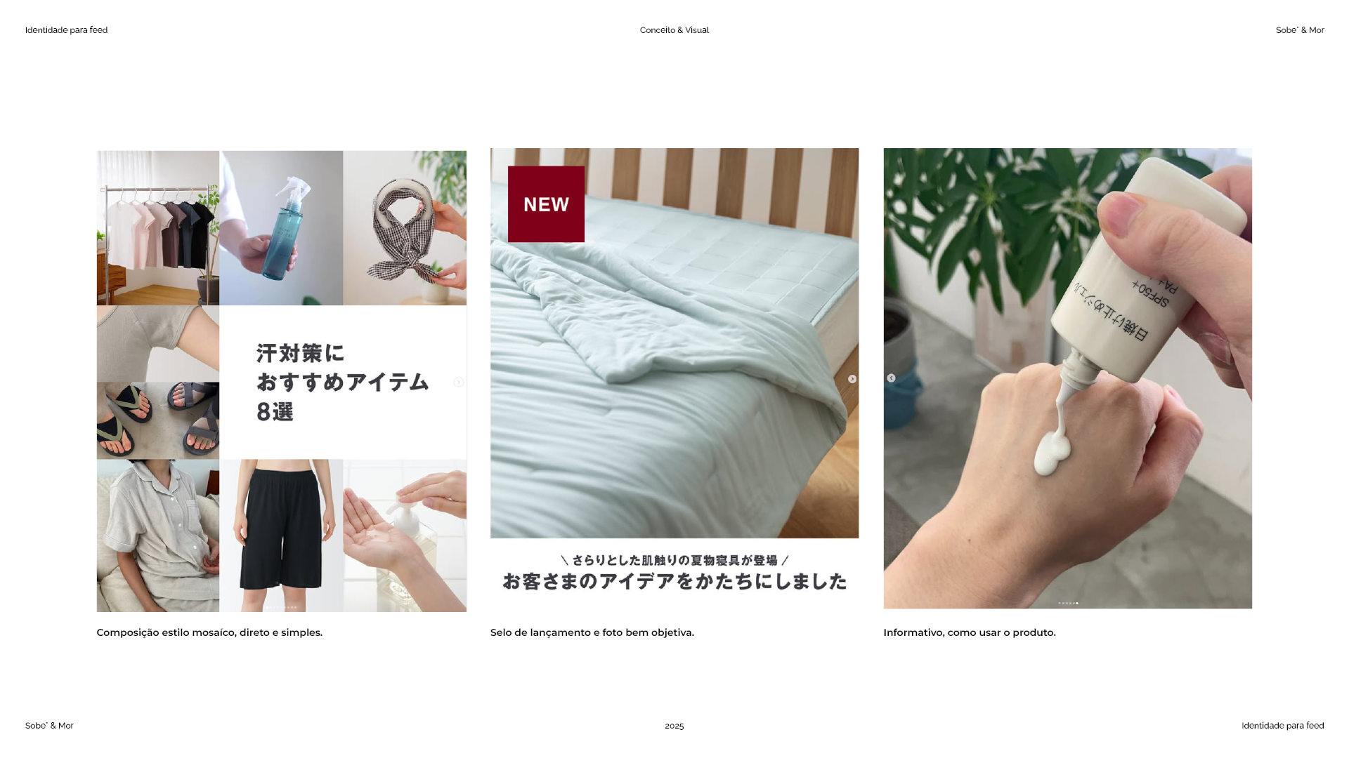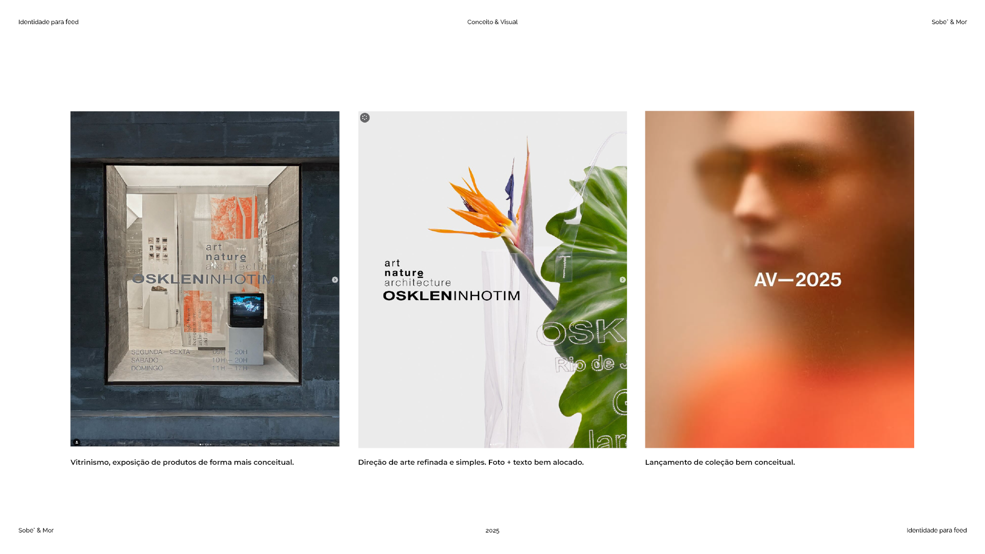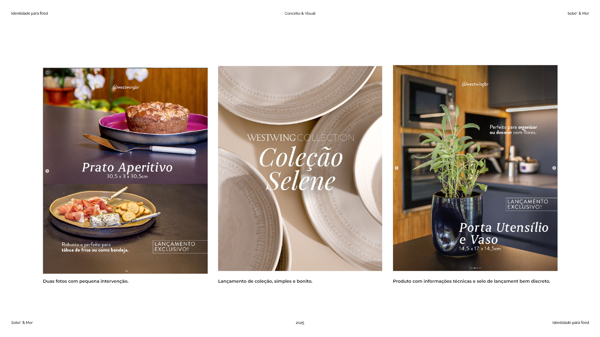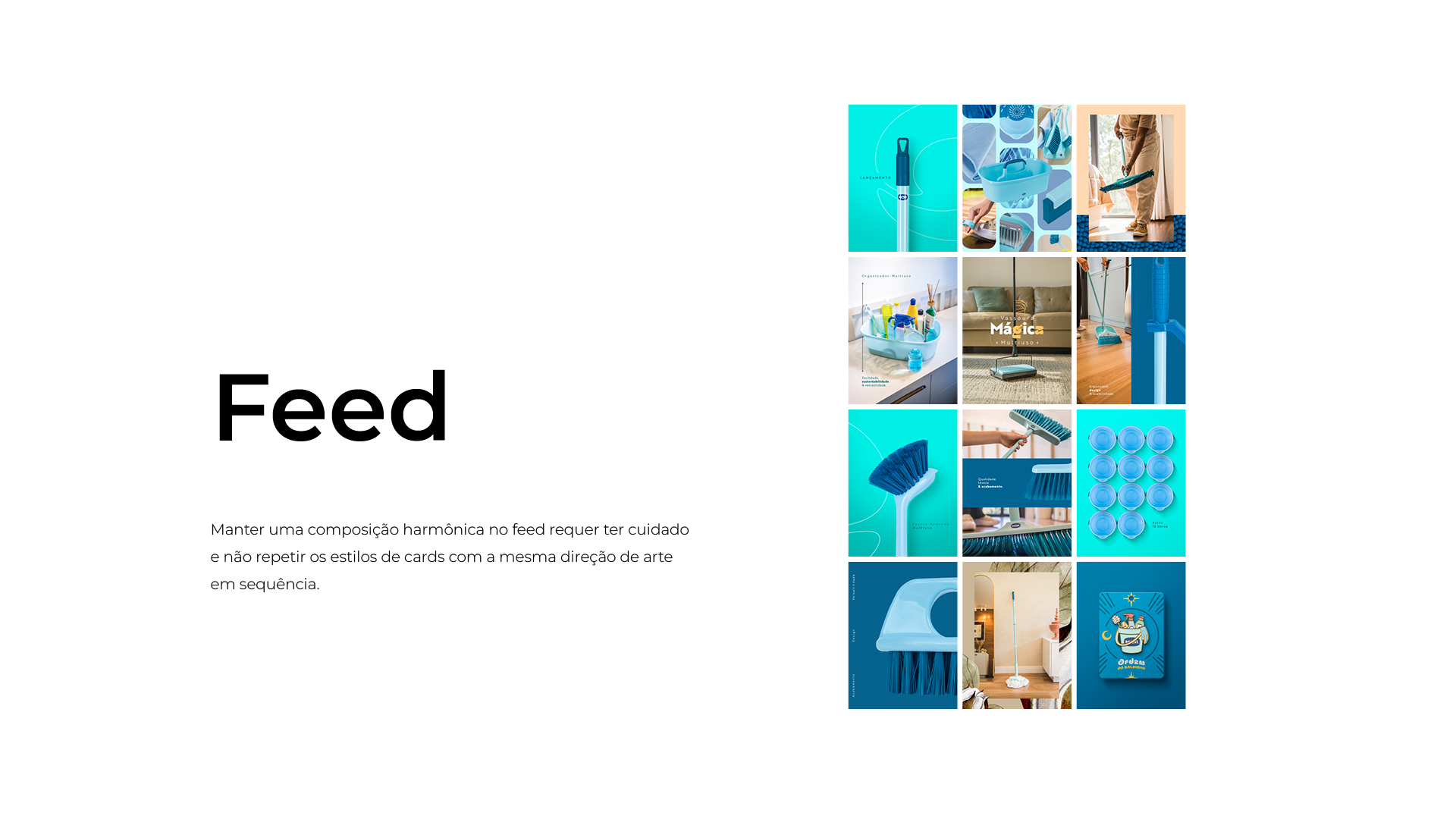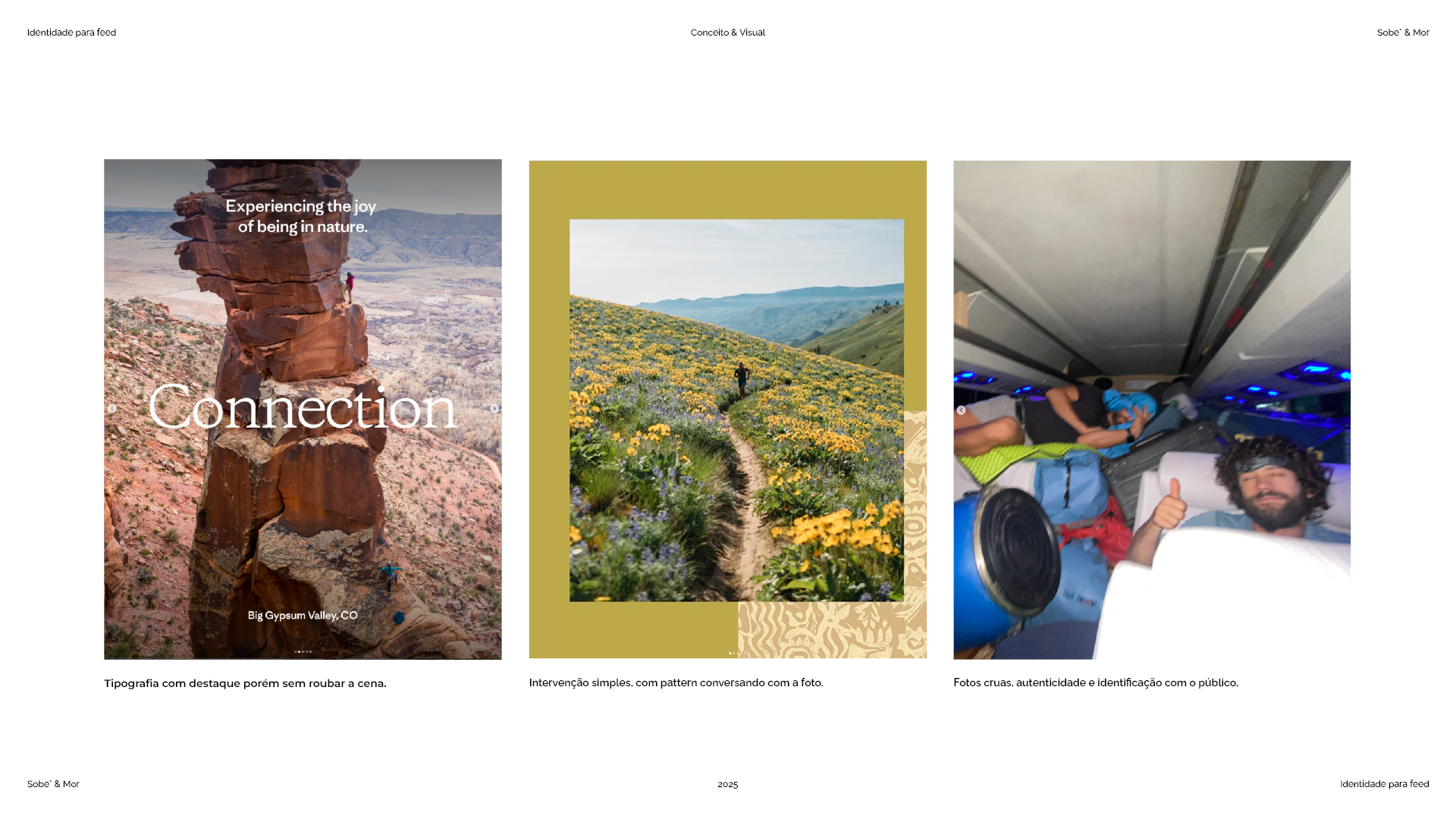 Criamos um sistema visual modular para o feed, pensado como uma sequência editorial.