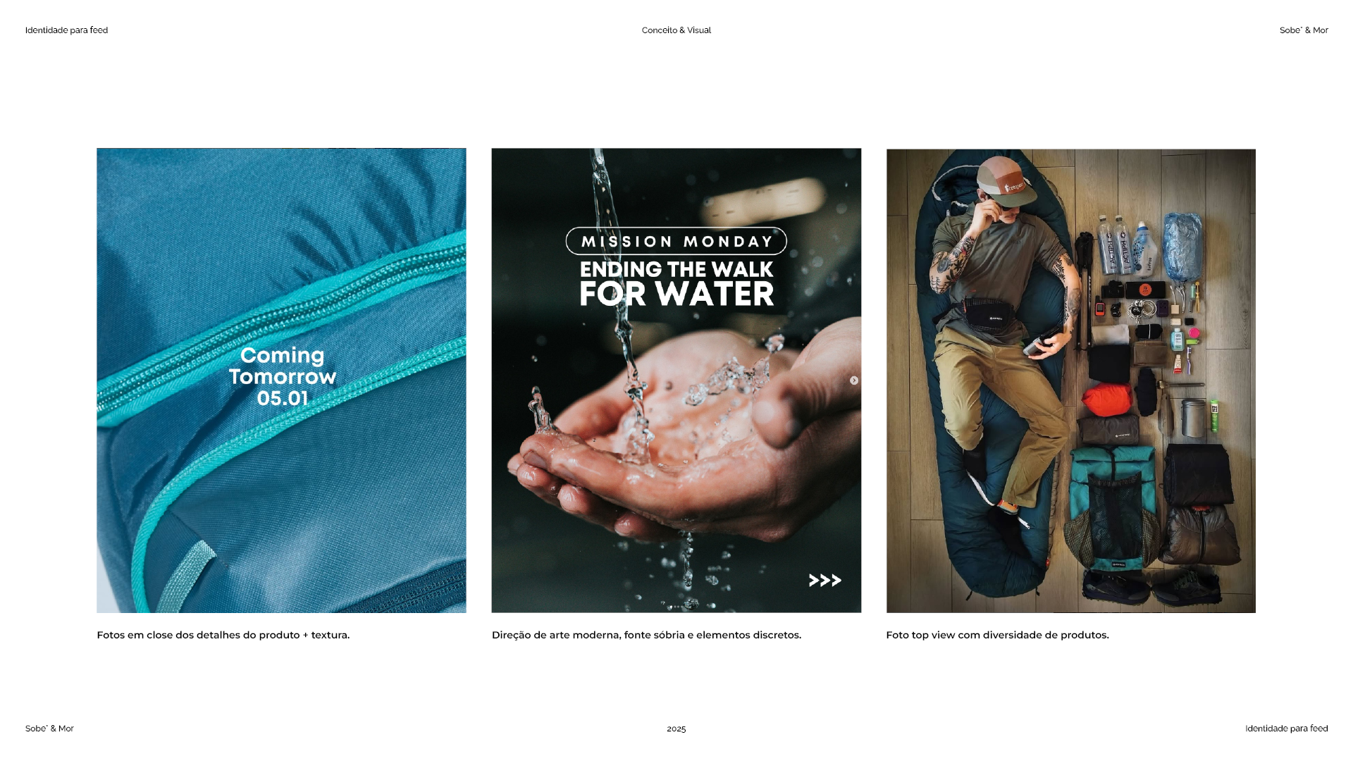 Fotografia, tipografia e composição trabalham juntas para gerar ritmo, identidade e reconhecimento.