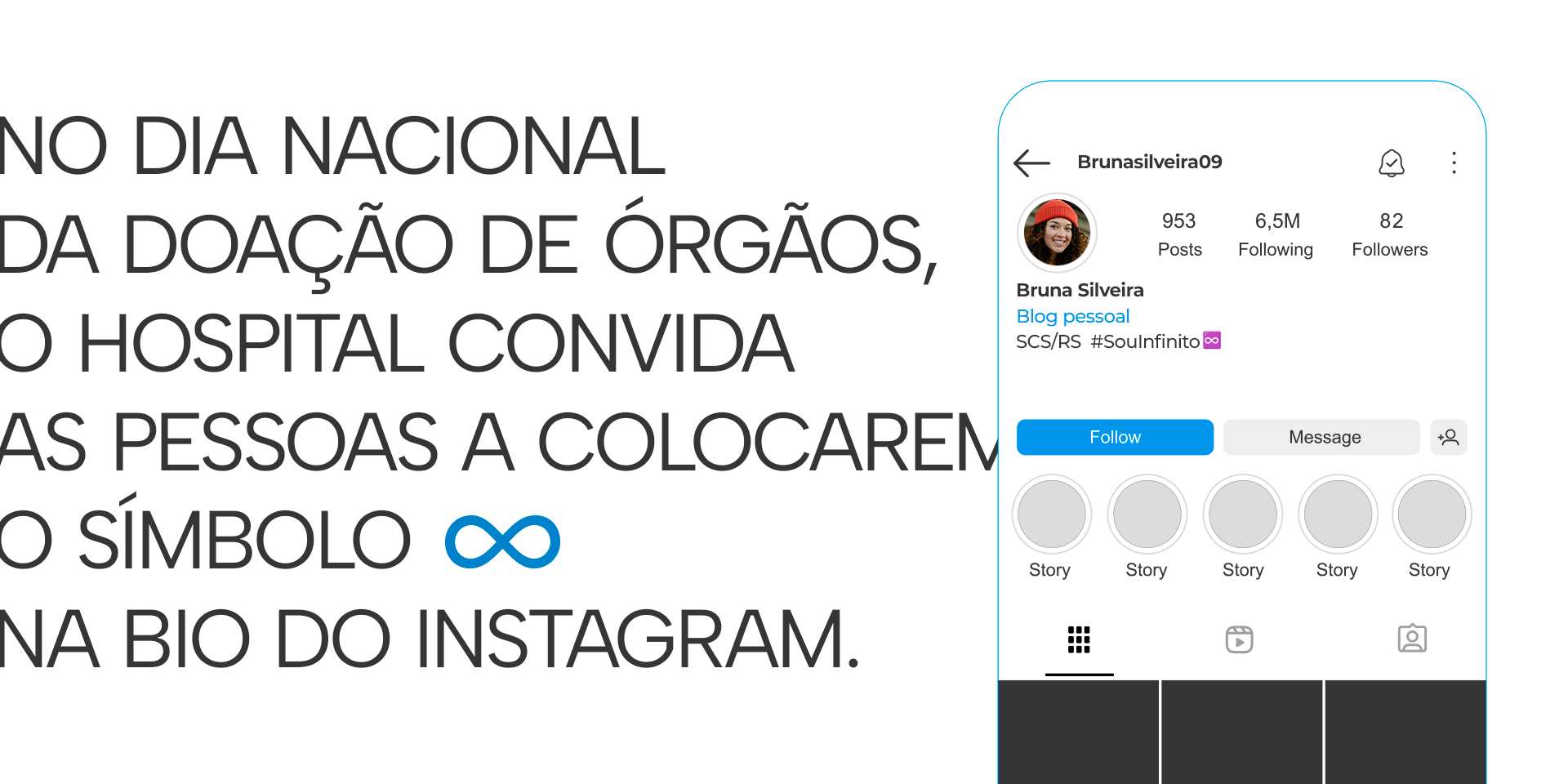 A ação convida as pessoas a colocarem o símbolo do infinito (♾️) no perfil do Instagram — na bio como uma forma de declarar publicamente sua vontade de doar órgãos.